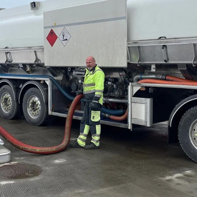 er sjåfør. Han henter og kjører ut det meste av oljen. Så dersom du er hjemme når vi kommer med tankbilen er det han du som oftest vil møte.