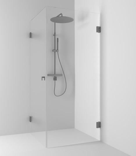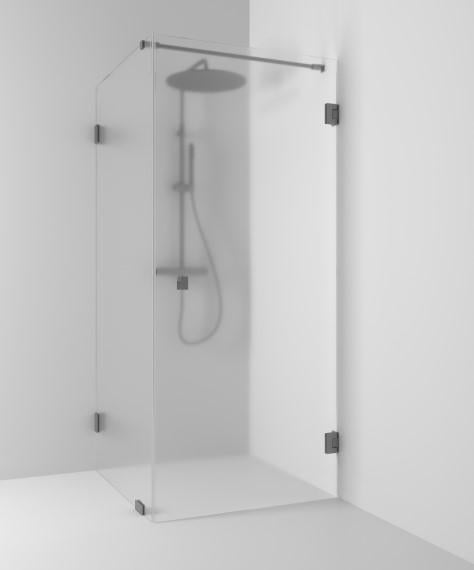 180° rett/fast hjørnedusj 90x90x200 blyantpenn svart profil og krystall frostet eller klart glass.