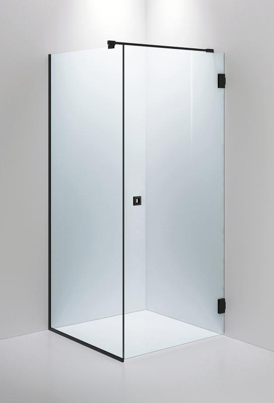 Dusjhjørne i 8 mm glass med dør og fast vegg. Døren har beslag og den faste veggen har skinne mot gulv og vegg. Måltilpasses på yttermål 300-1000 mm (dør) x 400-1200 mm (fast vegg). Artikkelnummer gjelder klart glass, beslag og skinner i matt svart. Kan også fås i andre glass; Timeless, Frosted, Smoke, Opal Clear, Opal Frost og Dark Frost.