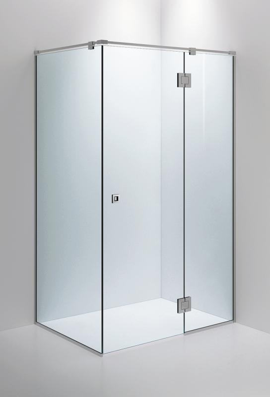 Dusjhjørne i 8 mm glass med to faste vegger og dør hengslet i den minste faste veggen. Måltilpasses på yttermål 400-1200 mm (fast vegg) x 500-1500 mm (fast vegg og dør). Maks bredde på dør som er hengslet i fast vegg er 750 mm. Artikkelnummer og pris gjelder klart glass, beslag og skinner i blank krom. Kan også fås i andre glass; Timeless, Frosted, Smoke, Opal Clear, Opal Frost og Dark Frost. Skinner og beslag kan også fås i Matte Black.