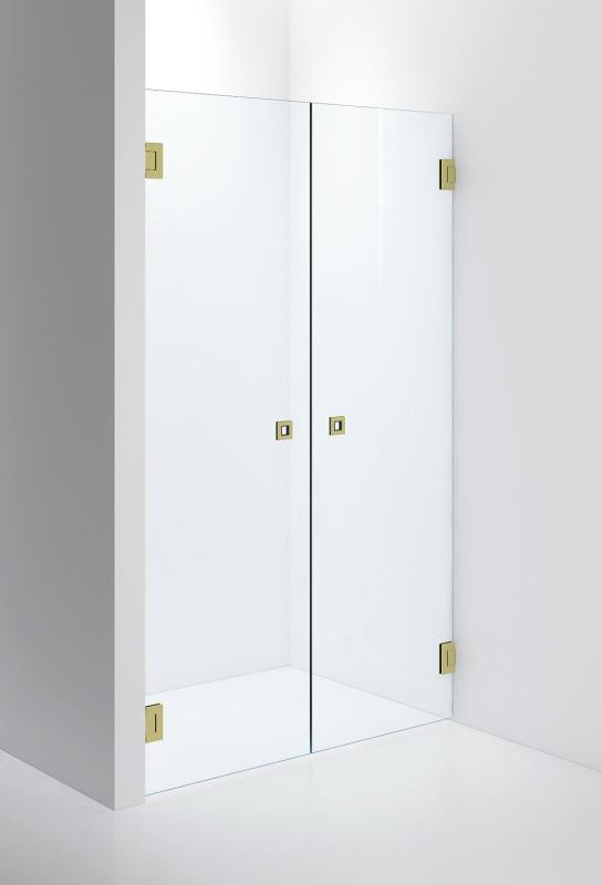 Minimalistiske "saloondører" i 8 mm glass med lekre beslag. Måltilpasses på nisjebredde 600 - 2000 mm. Maks bredde pr dør 1000 mm. Artikkelnummer og pris gjelder klart glass og beslag i Brushed Brass. Kan også fås i andre glass; Timeless, Frosted, Smoke, Opal Clear, Opal Frost og Dark Frost. Beslagene kan i tillegg til Brushed Brass fås i Polished, Matte Black, Brushed Stainless og Brushed Bronze.