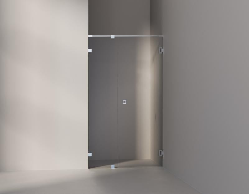 Nisjeløsning med dør og fast vegg i 8 mm glass og lekre beslag. Måltilpasses på nisjebredde 500 - 2200 mm. Maks bredde dør 1000 mm. Artikkelnummer og pris gjelder klart glass og beslag i blank krom. Kan også fås i andre glass; Timeless, Frosted, Smoke, Opal Clear, Opal Frost og Dark Frost. Beslagene kan i tillegg til blank krom fås i Matte Black, Brushed Stainless, Brushed Brass og Brushed Bronze.