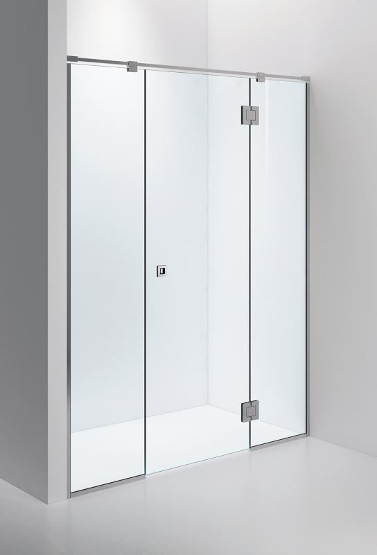 Nisjeløsning med to faste vegger og en dør i 8 mm glass. Skinne mot vegg og gulv på de faste veggene, døren har beslag. Måltilpasses på nisjebredde 700 - 2700mm. Maks bredde dør 750 mm. Artikkelnummer og pris gjelder klart glass, skinner og beslag i blank krom. Kan også fås i andre glass; Timeless, Frosted, Smoke, Opal Clear, Opal Frost og Dark Frost. Skinner kan fås i matt svart i tillegg til blank krom.
