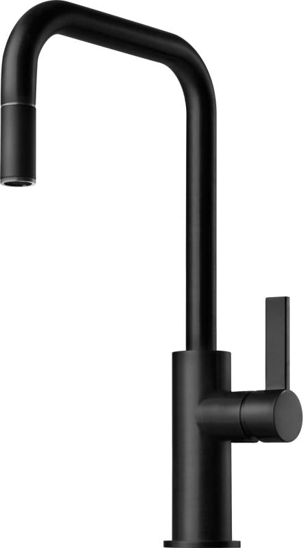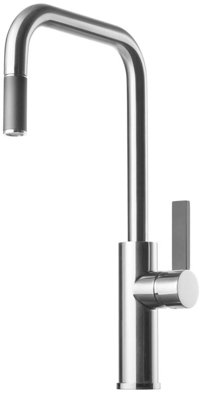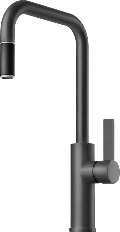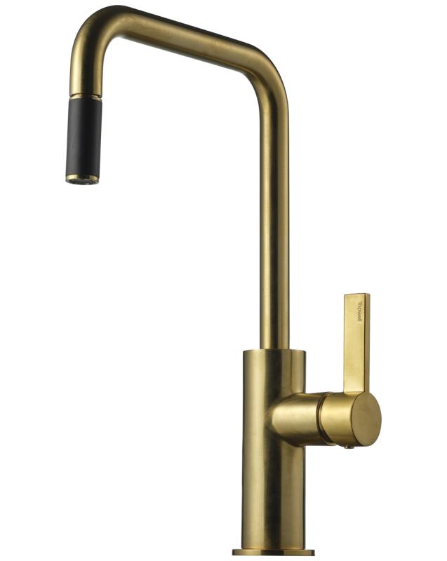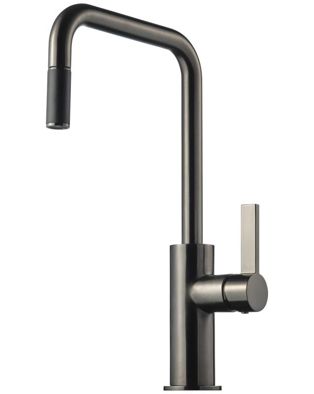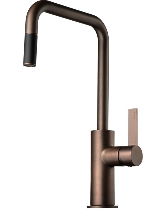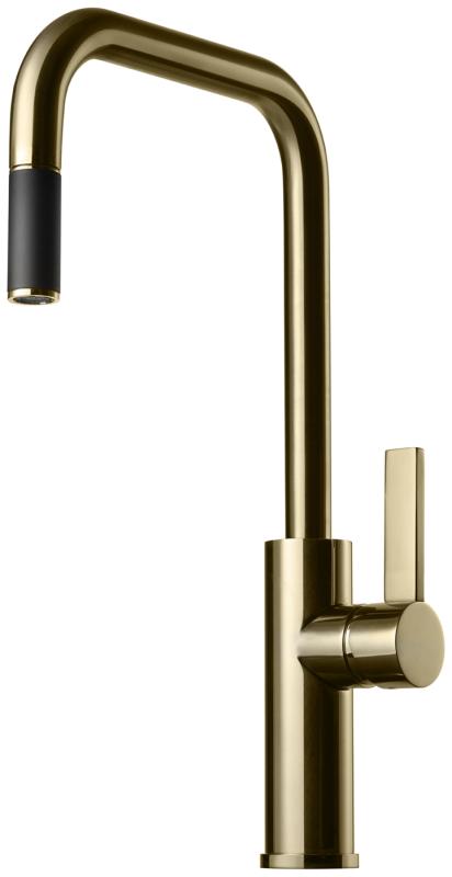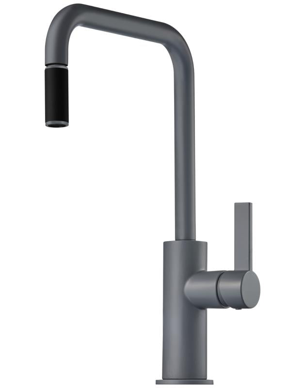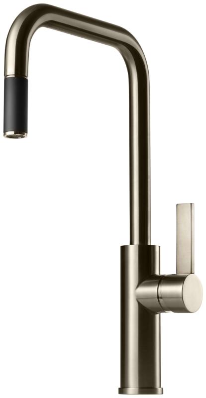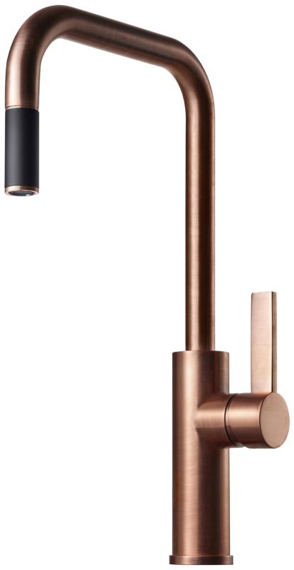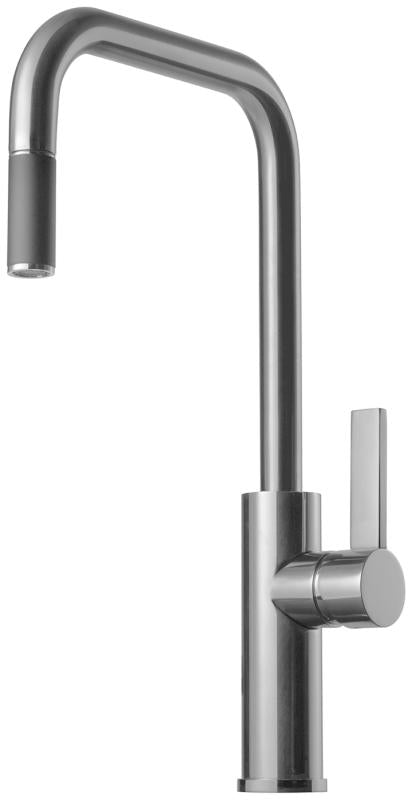 Kjøkkenbatteri med uttrekkbar hånddusj.