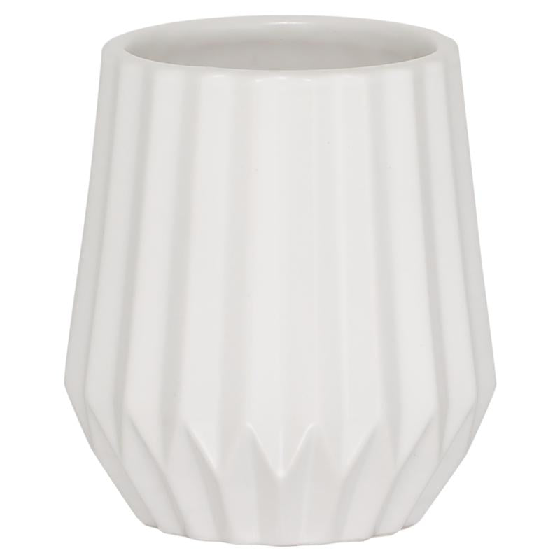 En klassiker med retro look. Produsert i keramikk med dekorative loddrette riller. Str: H98mm / Ø88mm Farge: matt hvit