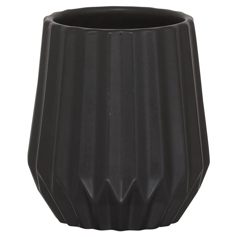 En klassiker med retro look. Produsert i keramikk med dekorative loddrette riller. Str: H98mm / Ø88mm Farge: matt sort
