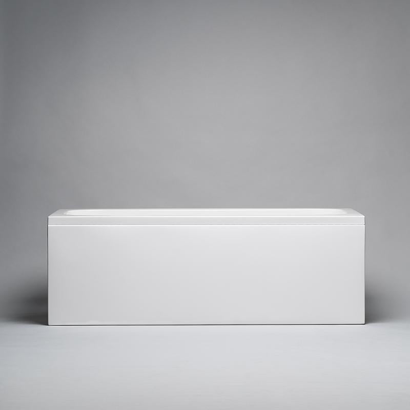 Lett plassert, rektangulært badekar i sanitetsakryl med riflet bunn, avtagbar front og gavl. Leveres inkludert bunnventil, avløpsrør, rustfritt stativ og justerbare føtter.