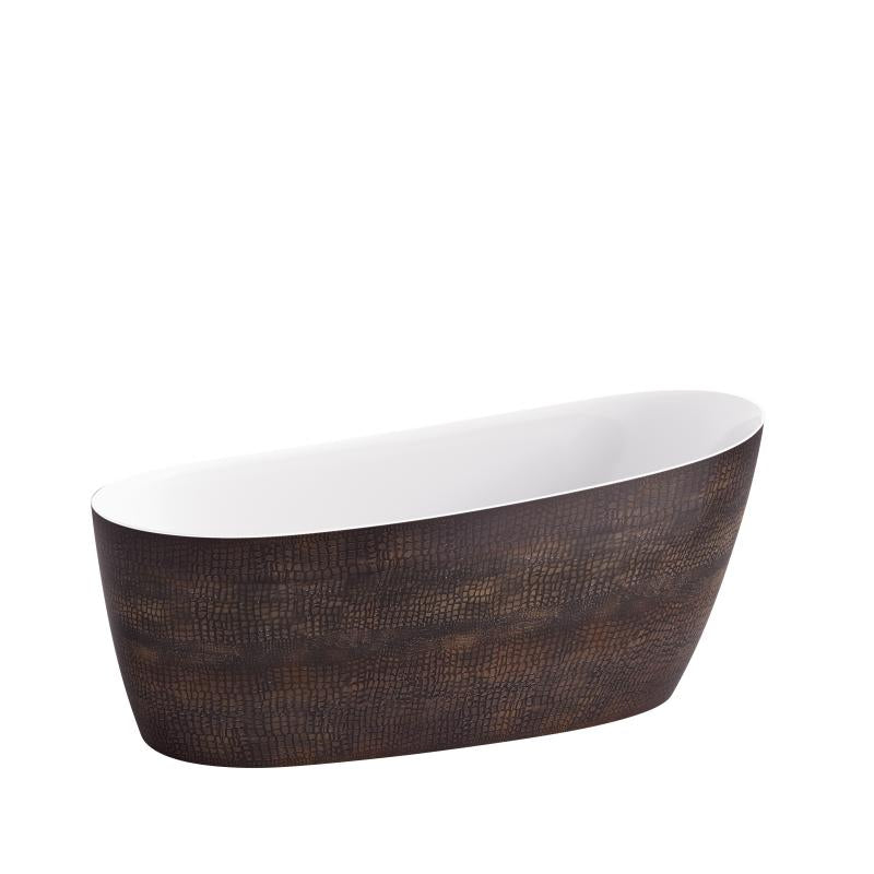 Et unikt badekar med krokodille-imitasjon Hampen er et helt unikt badekar som skiller seg ut i rommet. Designet med krokodille-imitasjonen med den brunaktige fargen i overflaten gir et nytt og spennende utrykk på baderommet. Formen på badekaret ivaretar sittekomfort og gir en følelse av luksus og velvære. Badekaret er håndlaget og det vil derfor være små avvik per produkt.
