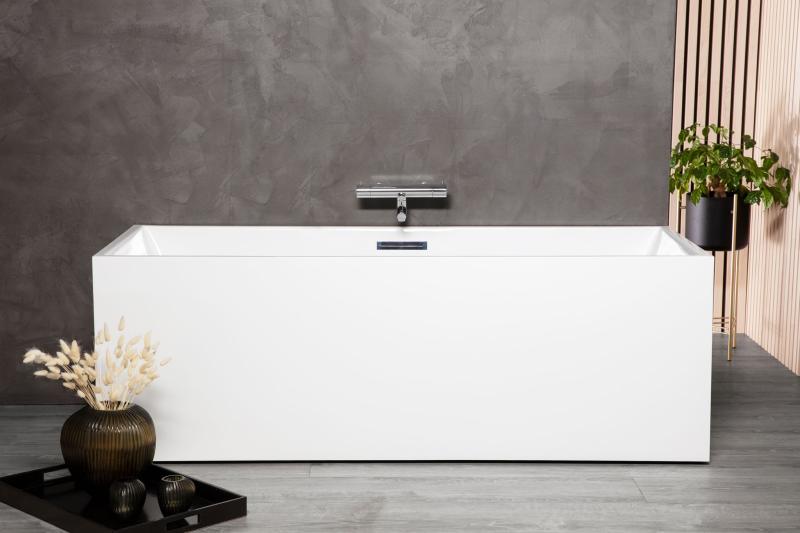 Stilrent og flott Back-to-wall designbadekar laget i helstøpt sanitærakryl med både front og endepaneler. Et moderne badekar med sitteplass i begge ender. Badekaret kan monteres i valgfritt hjørne eller midt på vegg.
