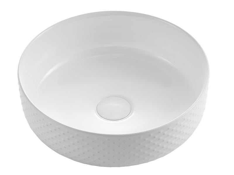 Elegant frittstående porselene servanti i hvit med utvendig nuppe dekor. *Bunnventil medfølger ikke