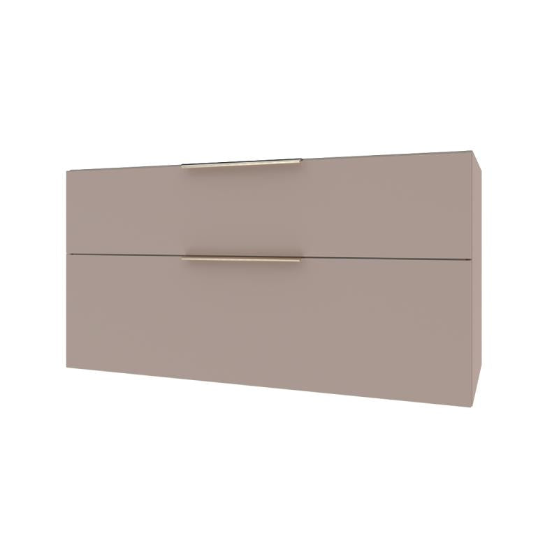 Servantskap med to skuffer, i høyde 60cm. Med utsparing for dobbel servant. Inkludert antisklimatter og grep i børstet messing.