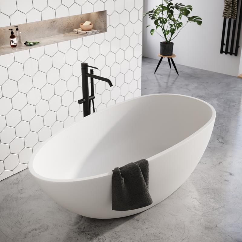 Velsten® komposit i silkemykt overflate og eksklusivt uttykk. 1680 x 820mm. Unik design som kombinerer luksuriøse egenskaper og proporsjoner som gir en stilig badeopplevelse. Vekt 122kg. Uten overløp.