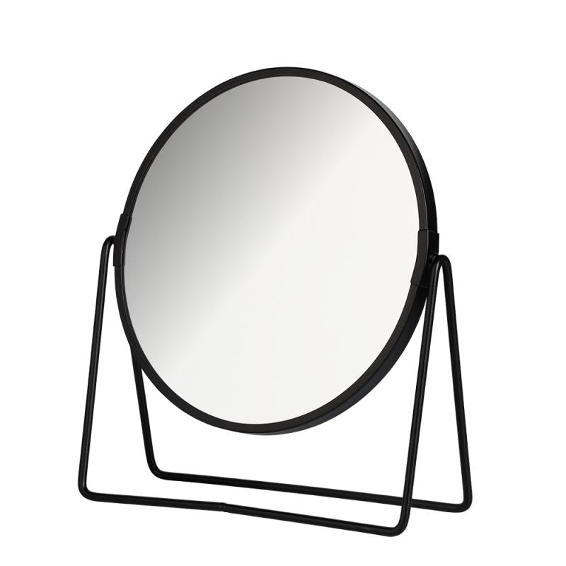 Tosidig speil med 5X forstørrelse på en side. Vanlig speil på den andre siden. 5 års garanti. Farge: matt sort. Str: Ø20cm - H: 24cm inkl. fot