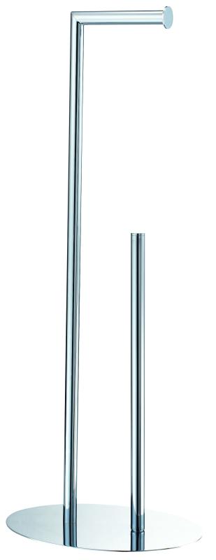 Frittstående toalettrull- og reserverullholder i forkrommet stål. Plass til 4 reserveruller. Produsert med oval fot. Høyde 71cm.