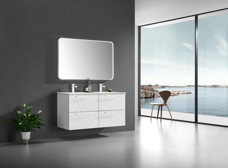 Komplett Møbelpakke. Inkluderer Como 120 Dobbel Deco i Matt hvit. Hvite Leone håndtak, Lisa dobbel porselenservant og Maranello 120 Hvit speil.