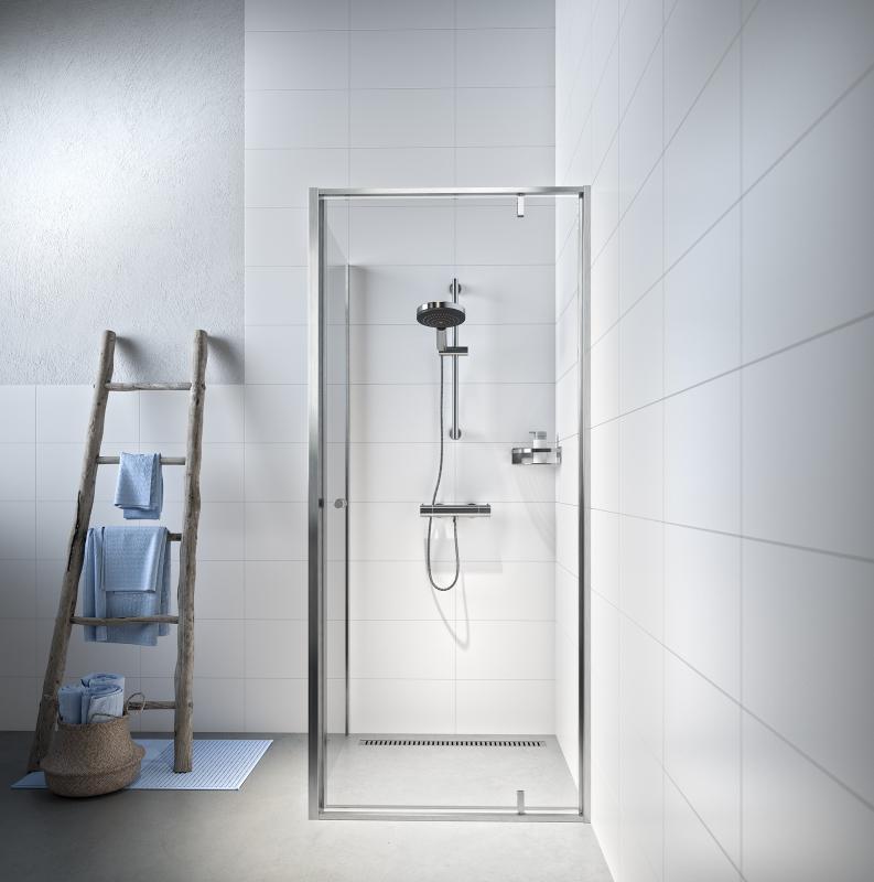 Contour Pivotdør med sidevegg 90x90 børstet stål