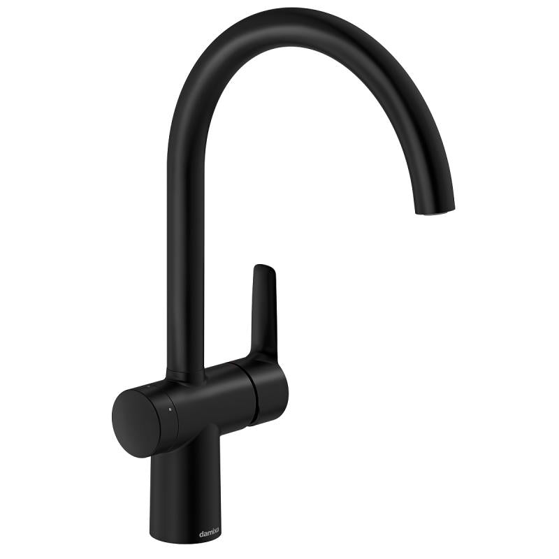 Core kjøkkenkran med avstengning for oppvaskmaskin i sort matt overflate. Avstegning på motsatt side av hendel som inkluderer avstengningen elegant i designet.
