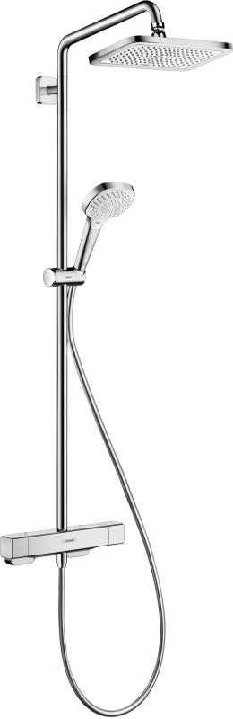 Dusjen hele familien vil sette pris på Transformer dusjen til en oase av velvære med Croma E 280 1jet showerpipe. Det ligger rikelig med erfaring innen velvære og avslappende dusjing bak dette dusjsystemets design. Overflaten på termostatarmaturen holder seg kjølig når du dusjer (CoolContact) så du ikke brenner deg. Vanntemperaturen holder seg også konstant. Den utenpåliggende termostaten igangsettes automatisk. En sikkerhetssperre sørger for at vanntemperaturen ikke overstiger 40 °C. Men for vågale livsnytere som liker vannet litt ekstra varmt, er det bare å skru av sikkerhetssperren med et enkelt knappetrykk. Det moderne SoftCube-designet med sine rene linjer og avrundede kanter passer perfekt til ethvert bad. Den slitesterke kromoverflaten er lett å rengjøre og vil holde på glansen i flere år fremover. Andre fordeler: • Sprudlende moro: Denne regndusjen fra hansgrohe omfavner deg i et bredt og innbydende dusjregn med en gjennomstrømningsmengde på opptil 15 l/min (ved 3 bar) • Mykt sommerregn: Hodedusjen blander vann med luft slik at dråpene føles fyldigere og mykere (AirPower) • Veldig praktisk: Du kan også justere vinkelen på hodedusjen for å holde håret tørt • Bredt utvalg: Du kan lett veksle mellom de tre stråletypene til hånddusjen bare med et knappetrykk (Select) • Kvalitetsprodukter fra hansgrohe: Termostatarmatur, dusjstang og hodedusj i metall • Enklere rengjøring: Du fjerner enkelt kalk og smuss ved å gni silikondysene på dusjhodet (QuickClean). Stråleskiven på hodedusjen kan fjernes for rengjøring • Enkel å montere: Dusjarmaturen kobles til eksisterende S-tilslutninger (G ½) og festes til veggen