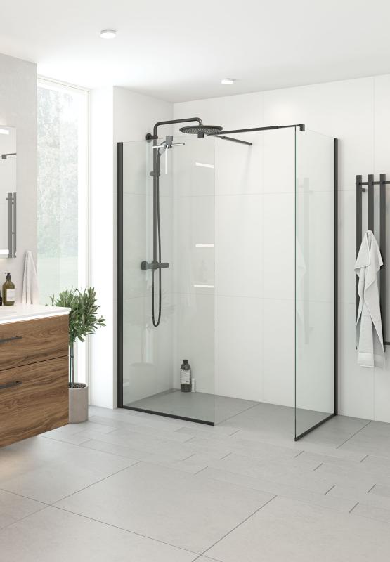 Flott dusjløsning av walk in-typen som gir stor plass og et eksklusivt utseende. Med 2 teleskopstenger og et monteringssett som gir en stabil løsning.