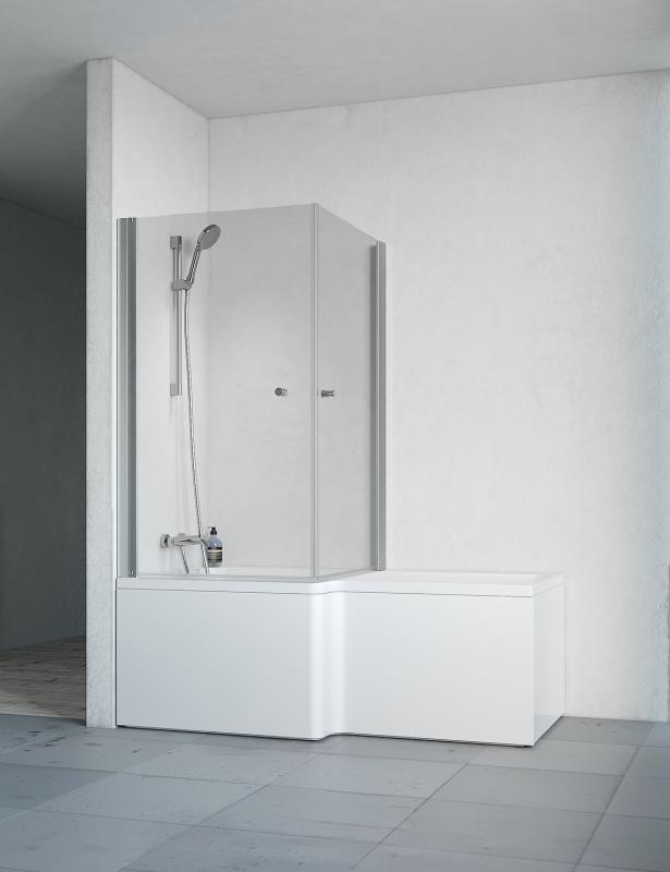Divine Hjørne hivt høyre 1600x850x2000mm (BxDxH). Fås med Spirit Dusjvegger, hvite profiler, klarglass 83x83.