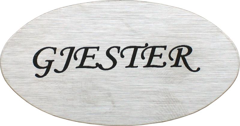 Praktisk dørskilt i børstet rustfritt stål med sort tekst. Ingen montering - skiltene leveres med påmontert dobbeltsidig tape. Str: 35 x 60mm