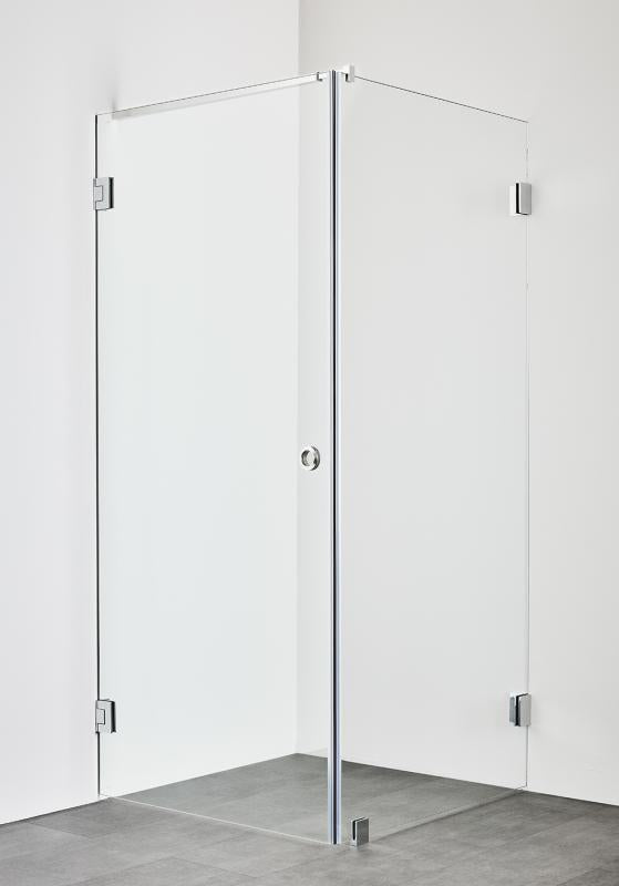 Eksklusivt dusjhjørne med pene beslag og en elegant håndtaksløsning. Velg mellom tre farger, krom, matt svart og børstet messingfarge. De store glassflatene gir et luftig inntrykk og skaper en herlig plass i baderommet. Dusjhjørnet består av en fast vegg og en dør som kan åpnes. Døren og veggen er vendbar slik at du kan velge om døren skal plasseres til høyre eller venstre. Tenk på at infinity ikke har tetningslister som standard, så et korrekt gulvfall blir ekstra viktig. Magnetlist inkludert. Full høyde 2000 mm og med 8 mm herdet klart sikkerhetsglass.