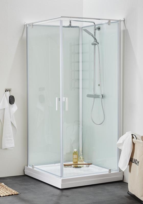 Elegante profiler og store glassflater gir et luftig og stilrent inntrykk. Totalhøyde 2000 mm som gjør det mulig å plassere kabinettet i et rom med takhøyde på 2,05 m. 5 mm herdet sikkerhetsglass og bakvegger i frostet glass. Profiler og håndtak i aluminium med en matt sølv finish. Lavt dusjkar i sanitetsakryl 115 mm med rustfritt sveiset stativ og avtagbar front. Magnetfunksjon ved lukking. Blandebatteriet monteres på høyre eller venstre side på 80x80 og 90x90 mens 70x90 alltid har blandebatteriet på 70 cm siden. Monteres helt uten bruk av silikon. Leveres med dusjsett, termostatblander (cc150) og takdusj med justerbar stang. Rundt dusjhode 210 mm i rustfritt stål. Termostatblanderen har skoldingsbeskyttelse og HeatProtection, en funksjon som forhindrer at du brenner deg på blandebatteriet.