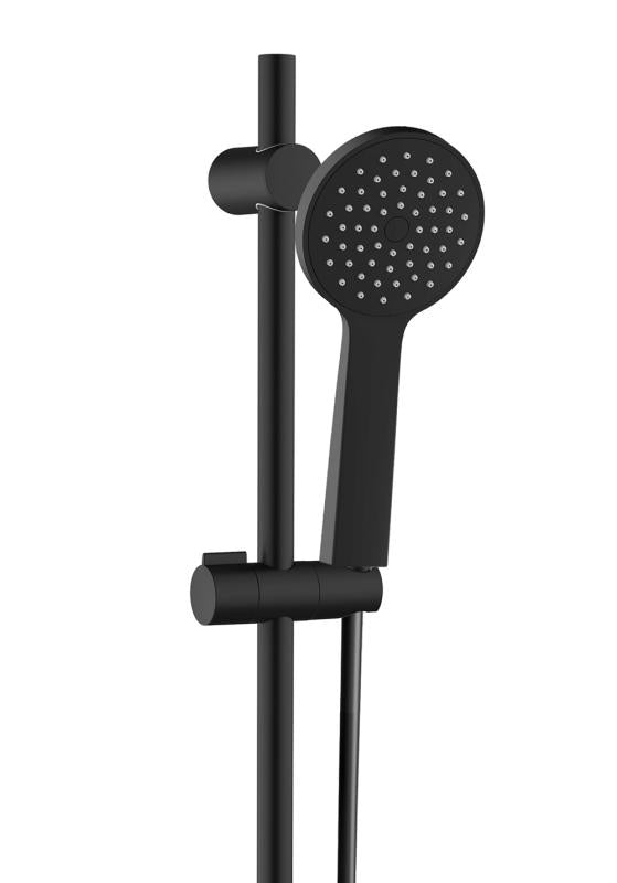 Smidig og stilrent dusjsett i krom eller matt svart med dusjstang i rustfritt stål og dusjslange med AntiTwist. Gripevennlig, elegant dusjhåndtak med Water Save. Dusjstang med justerbare veggfester 350575 mm. Kombiner dusjsett i matt svart med våre nye svarte Mix dusjbatterier.