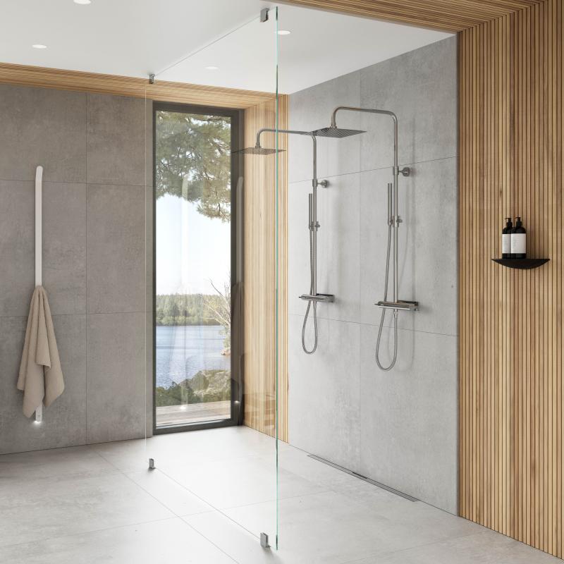 EASE er et eksklusivt takdusjsett med blandebatteri fra Mora, Eco Flow-funksjon som sparer vann og innebygget skåldebeskyttelse. Firkantet takdusj 250x250 mm. Høyde 1795-2095 mm fra gulv til underkant takdusj. Dusjstangen er justerbar.