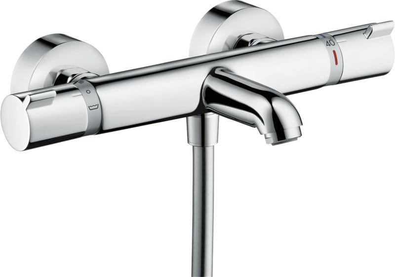 Få kontroll over dusj- og badeopplevelsen med økt brukervennlighet og sikkerhet ved å velge en kvalitetstermostat fra hansgrohe! Styr vannmengden og temperaturen problemfritt og sikkert. Badekartermostaten Ecostat Comfort fra hansgrohe er en moderne termostat som kobles raskt og enkelt til eksisterende tilslutninger (utenpåliggende montert). Blandebatteriet er laget av skinnende krom som er en fryd for øyet. På innsiden: patentert, slitesterkt innmat fra hansgrohe. Vanntemperaturen og -mengden holdes konstant ved hjelp av to dreiegrep. Dette beskytter mot ubehagelige svingninger i dusjen og badekaret – uansett om trykket i boligen varierer. En automatisk sikkerhetssperre ved 40 °C gjør at familien kan dusje eller bade uten å være redd for at vannet blir for varmt. Du kan selvsagt også stille inn temperatursperren etter eget ønske. Det er lett å lese de slitesterke bokstavene på de ergonomiske metallgrepene. Lyddemperen gjør termostaten stillegående, mens tilbakeslagsventilen og perlatoren gjør det lett å opprettholde god hygiene. Ecostat-termostater er et optimalt valg når kun termostaten skal skiftes ut. I denne termostaten blandes vannet med rikelige mengder luft takket være AirPower. Dette gjør vannet fyldigere og mykere slik at den spruter mindre. Kalkavleiringer fjernes lett ved å gni fingeren på den fleksible silikonbaserte perlatoren (QuickClean).