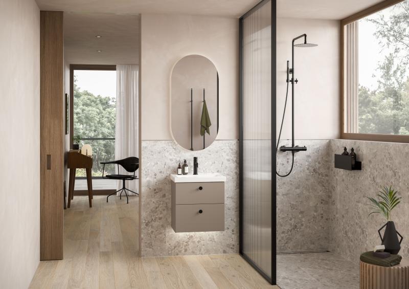 Fast vegg fra gulv til tak i 6 mm glass og ramme. Måltilpasses på bredde 400 - 1200 mm og høyde 1400 - 2700 mm. Artikkelnummer og pris gjelder retroglasset Sway og ramme Onyx. Finnes også i andre glass; Frosted, Smoke og Clear. Rammen kan også fås i Stone utførelse.