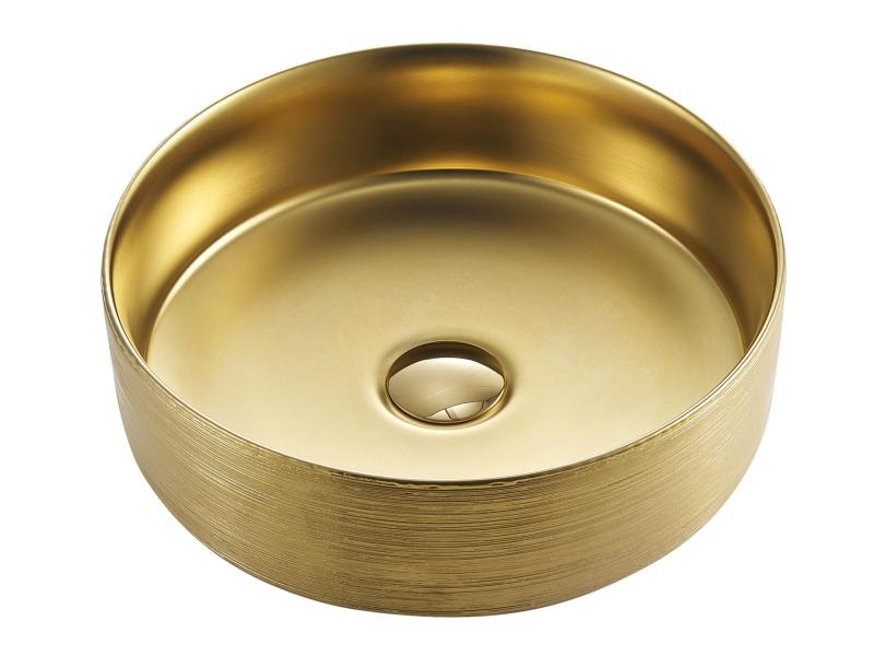 Elegant porselen servant i gull med lekker dekorert ytterflate. *Bunnventil medfølger ikke
