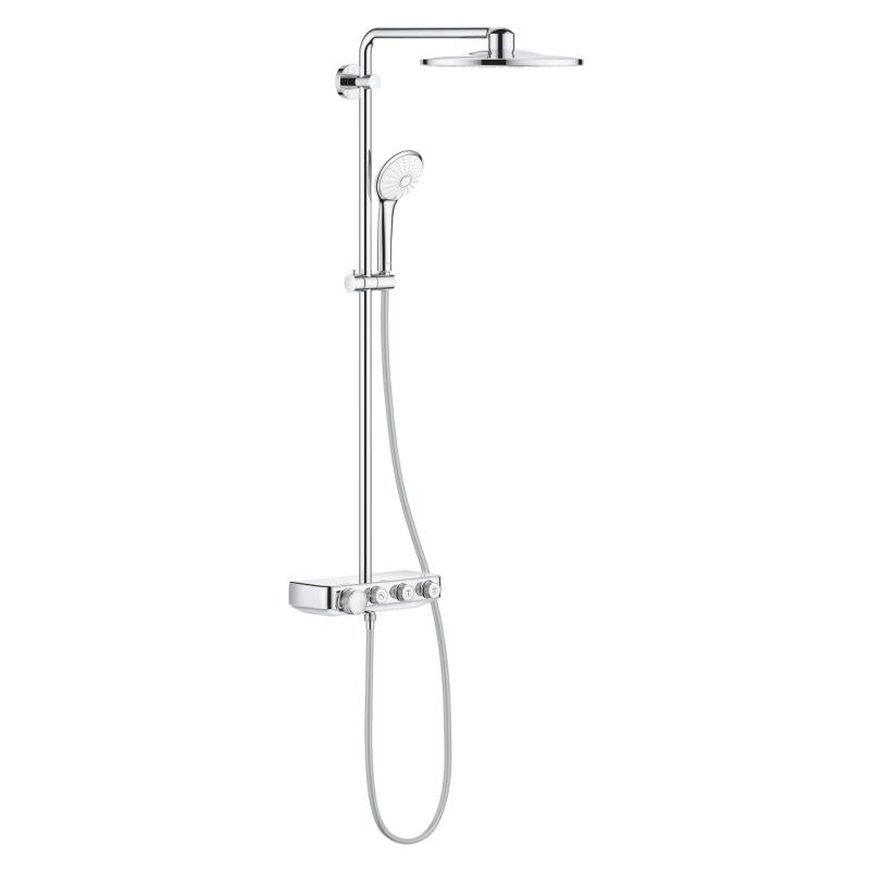 Dusjsystem med trykkstyrt SmartControl-termostat, 310 mm rund hodedusj med 2 stråletyper og hånddusj med 3 stråletyper. Bestillingsvare.
