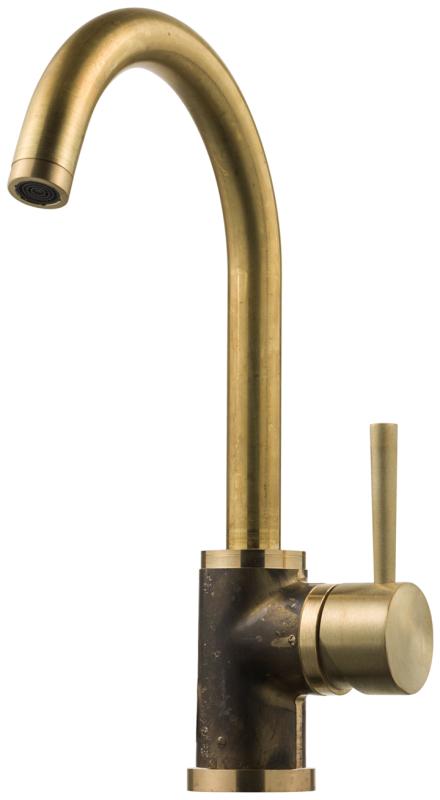 Ettgreps kjøkkenbatteri med høy buet tut og uten avstengning for oppvaskmaskin.