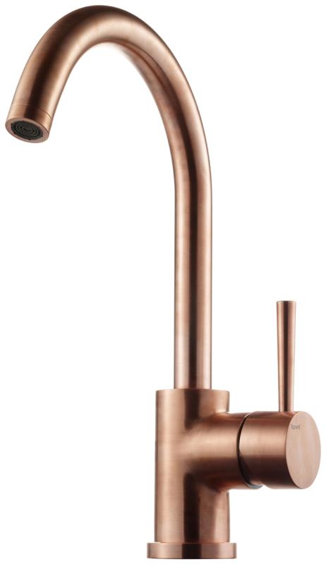 Ettgreps kjøkkenbatteri med høy buet tut og uten avstengning for oppvaskmaskin.