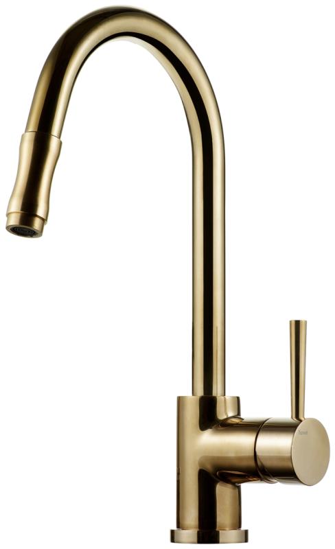 Kjøkkenbatteri med høy buet tut og uttrekkbar hånddusj. Ettgreps.