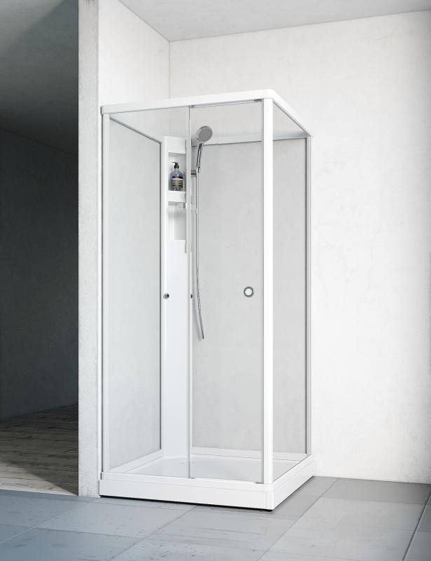 Flow Front utp Kabinett Hvit Klarglass 910x910x2020mm (BxDxH)