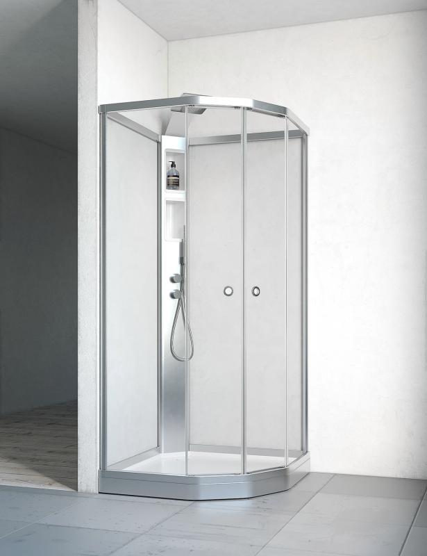Flow Semi Dusjkabinett innfelt blandebatteri og takdusj Matt Klarglass 910x910x2180 mm (BxDxH)