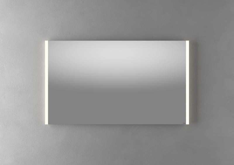 FYLI speil med lyskant og dimmer vist i 120 cm bredde. FYLI kan leveres fra 60 cm opp til 120 cm. Høgde 70 cm / Dybde 2,1 cm. 3000K / IP44