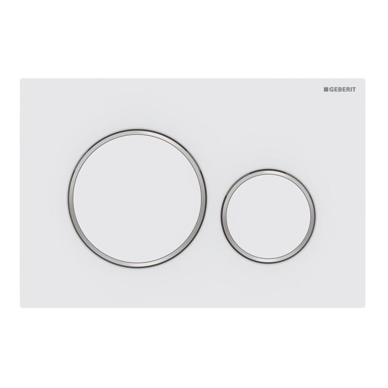 Sigma20 betjeningsplate for aktivering av skyll med Sigma innbyggingssisterner. Sigma20 er med dobbel skyllefunksjon, i blankforkrommet plast med mattforkrommet designringer. Finnes i flere elegante farger. Monteres enkelt i front. Betjeningsplaten setter ikke bare prikken over i-en på badet ditt, den kan også tilby ulike funksjoner som luktavsug, innsats for DuoFresh duftpinner, samt flere skyllefunksjoner for å tilpasse vannforbruket etter behov. Oppgrader badet ditt med Geberit Sigma betjeningsplater og la funksjonalitet møte eleganse på en intelligent måte.