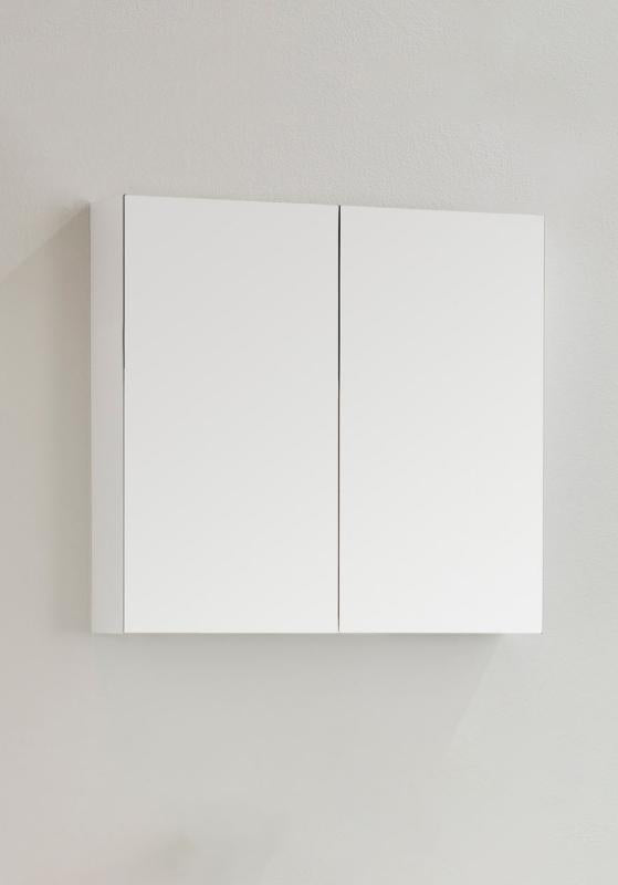 Speilskap med dobbelsidige speildører i fløyelsmatt overflate i hvitt og svart. Monteres enkelt opp på skinne på vegg, noe som gjør det enkelt å installere for en person. Kjøp til Go LED-lamoe, 126 72 70 og strømuttak 126 72 65.