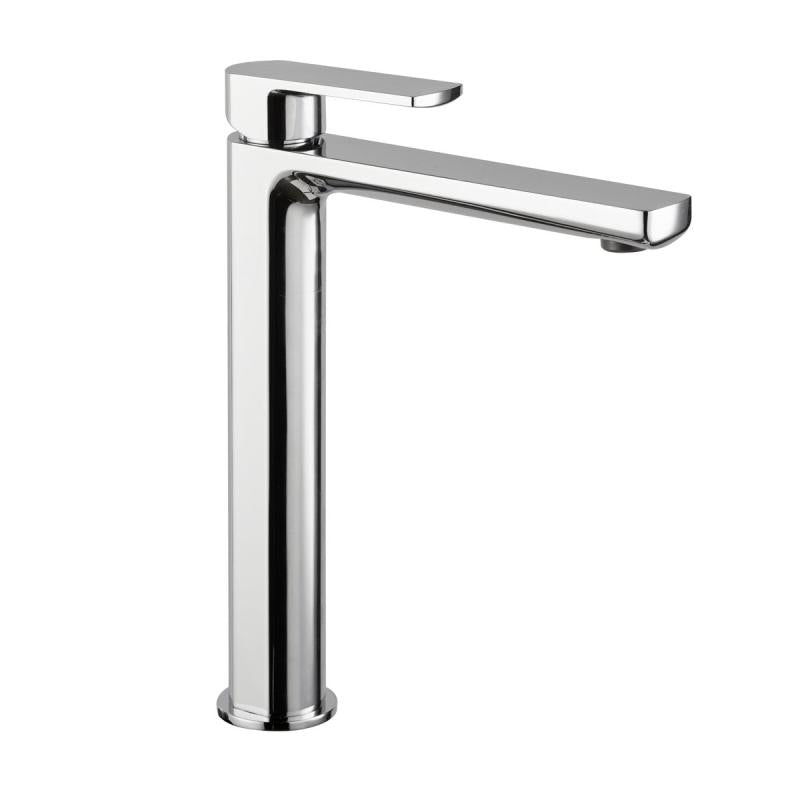 Høy servantkran med stramme men avrundede former. Krom overflate. Høyde 266mm. Finnes også i sort matt overflate.