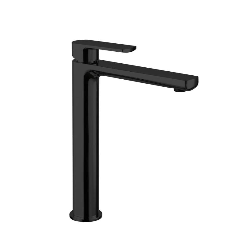 Høy servantkran med stramme men avrundede former. Sort overflate. Høyde 266mm. Finnes også i krom overflate.