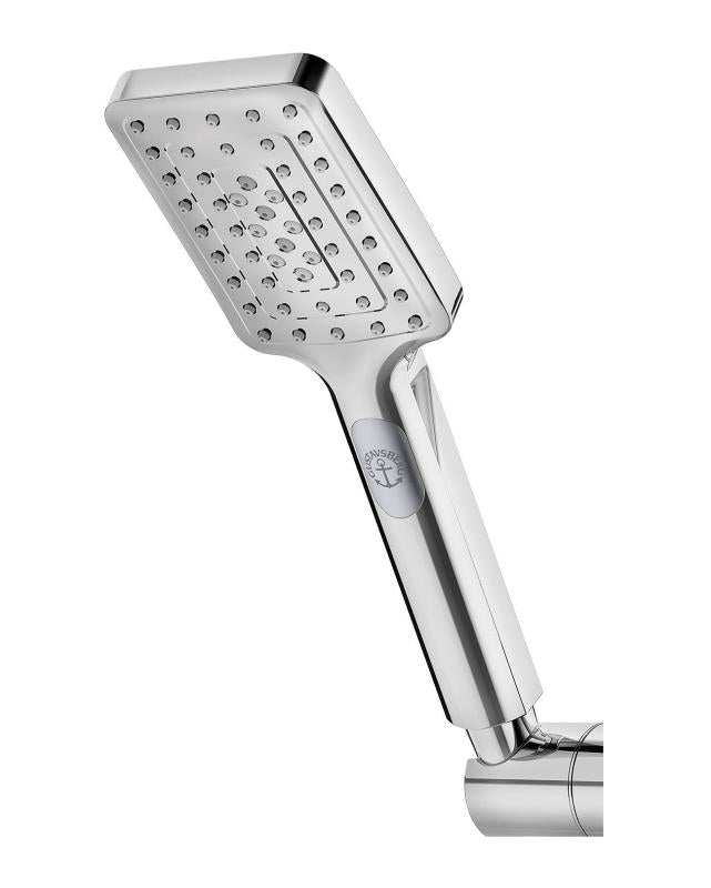 Gustavsberg hånddusj Square - med 3 funksjoner, rain, rain-jet og jet. Easy clean gjør det enklere å rengjøre spraydysene.