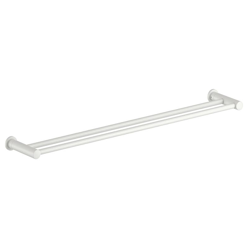 Dobbel håndklestang i messing med hvit matt overflate, leveres i flere overflater. Hånklestangen kan kappes til ønsket lengde. Festes med skruer.