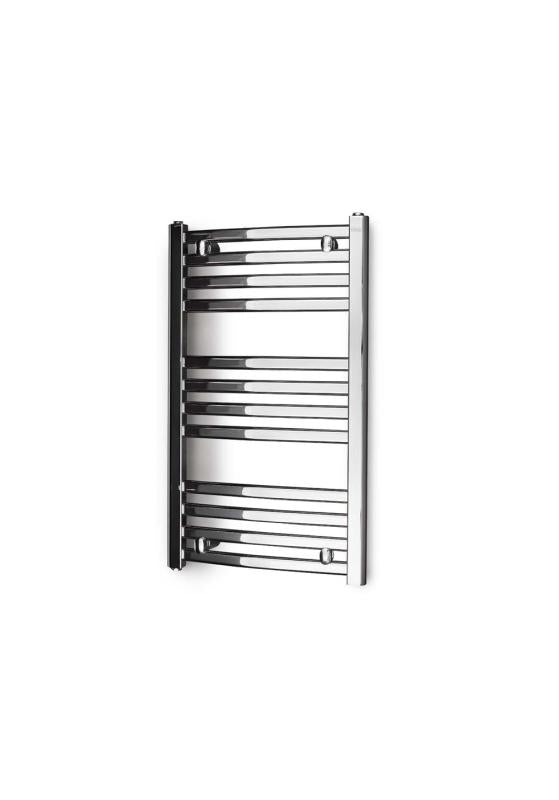 Håndkletørker av firkantede forkrommede rør av stål. For vannbåren varme eller elpatron. Fås i tre høyder og to bredder