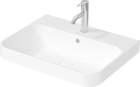 Slipt underkant, med overløp, med plattform til kranhull, Ikke glassert på baksiden, inkludert feste, Inklusiv keramisk push-open bunnventil. Design by Sieger Design Duravit har passende møbler til hvis ønskelig.