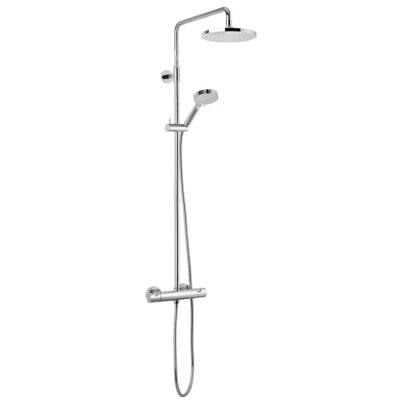 Komplett takdusj 200mm med termostat og hånddusj. Justerbar lengde på stang 1020-1250mm. Rub-clean funksjon på dusjhodet.