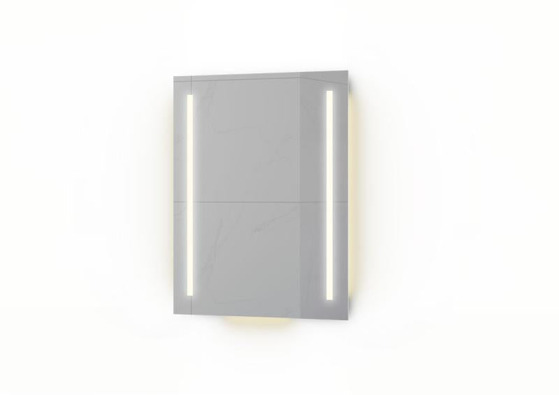 VikingBad Ida Speil med innfelt LED sidelys, downlight og dobbelt stikk Størrelse: 60 x 75 x 5,6cm IP44 Godkjent 5 mm speilglass Enkel montering Dimbare LED lyslkilder Enkel skifting av LED lyskilder LED lys farge kan justeres trinnløst fra 2700-6500K Stikkontakt Dobbel USB kontakt
