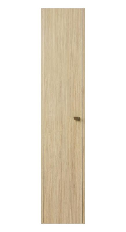 Høyskapet leveres med dør ferdig montert, grep i børstet messing. Inneholder en fastmontert og fire løse hyller.Produktmål: 35x 40x170 cm. Leveres også i Hvit og Valnøtt utførelse.